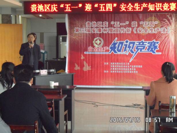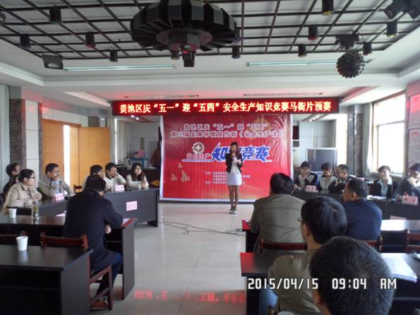 4月15日上午,贵池区马衙片庆“五一”迎“五四”第三届安康杯暨宣传新安全生产法知识竞赛在马衙街道四楼会议室举行。