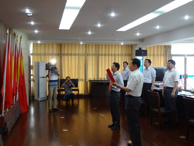 会上,区委书记、区人大常委会主任樊泽明向周凯颁发了任命书,并主持向宪法宣誓仪式;区人大常委会党组书记、副主任刘复明向周凯赠送了宪法文本;区人大常委会党组副书记、副主任尤忠祥担任本次宣誓的领誓人。