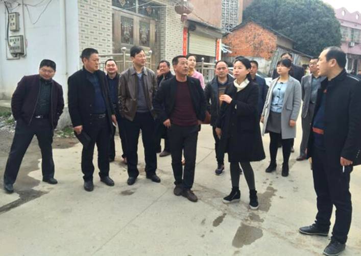 图为陈燕书记、尤兵主席和参加调研的代表等听取村居工作人员介绍有关情况